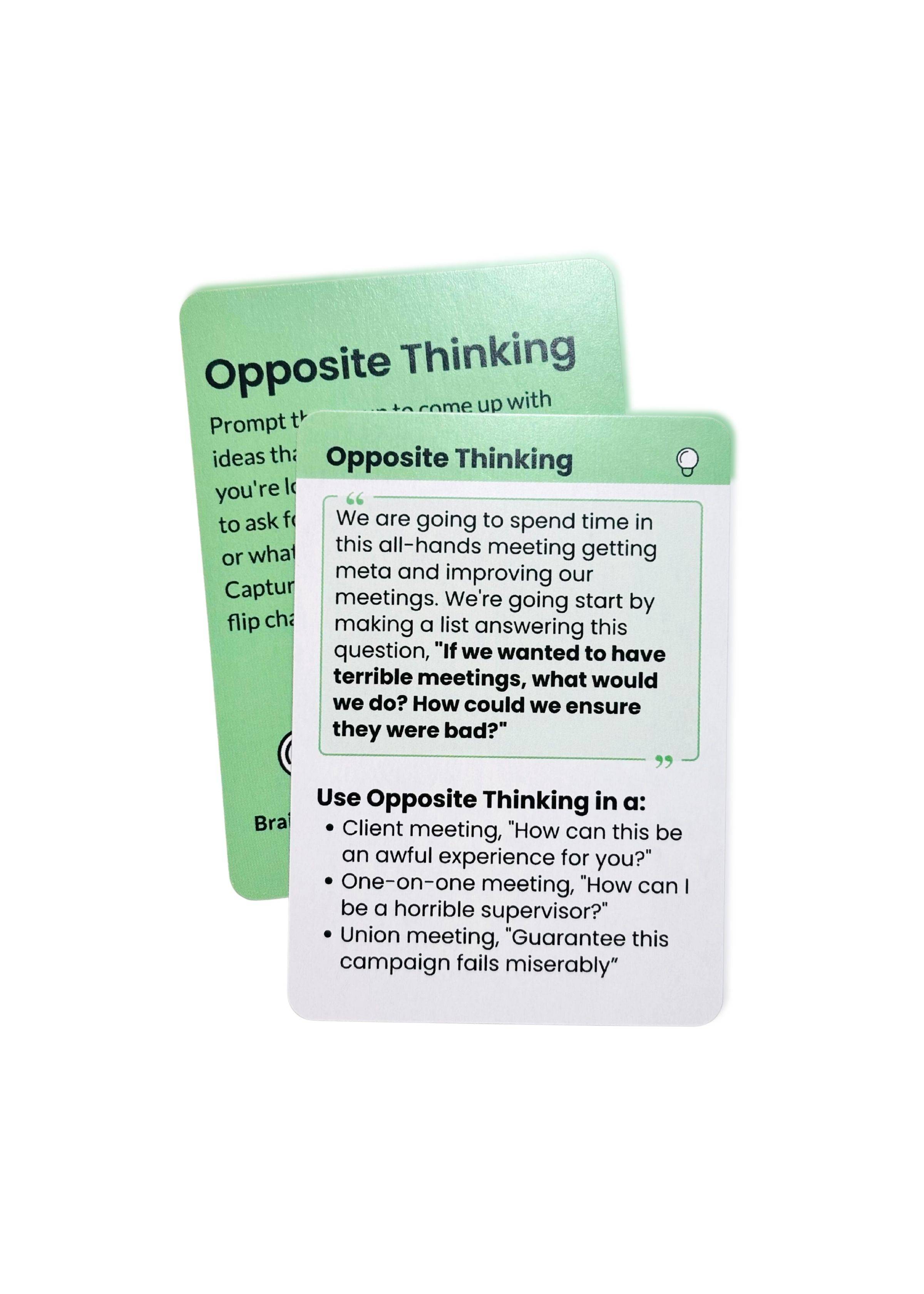 18 of the best Facilitator Cards curated just for meetings with instructions for how to introduce the card + prompts and examples of when to use it on the back of each card.